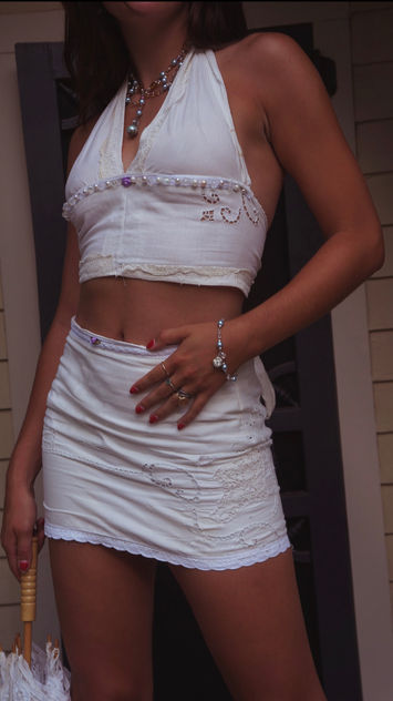 This collection was inspired to encapsulate the feelings that come with having a fresh start. The summer coming out of my senior year I challenged myself to create three full looks in a month. These pieces were hand sewed by me and made from vintage lace fabrics and table cloths. Sustainability is extremely important to me as I almost always use recycled materials. The collection was modeled by Jamie Mayes, Kamaura McMicheal, and myself. The Photography and Jewelry was done by Rosa Acevedo.